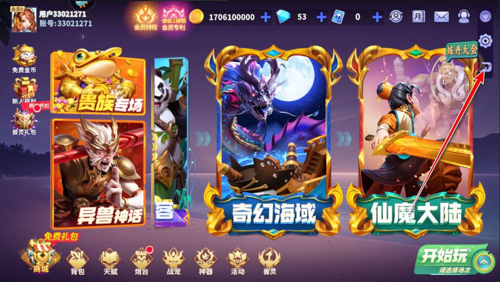 1.进入捕鱼炸翻天游戏,点击右上角向下的箭头