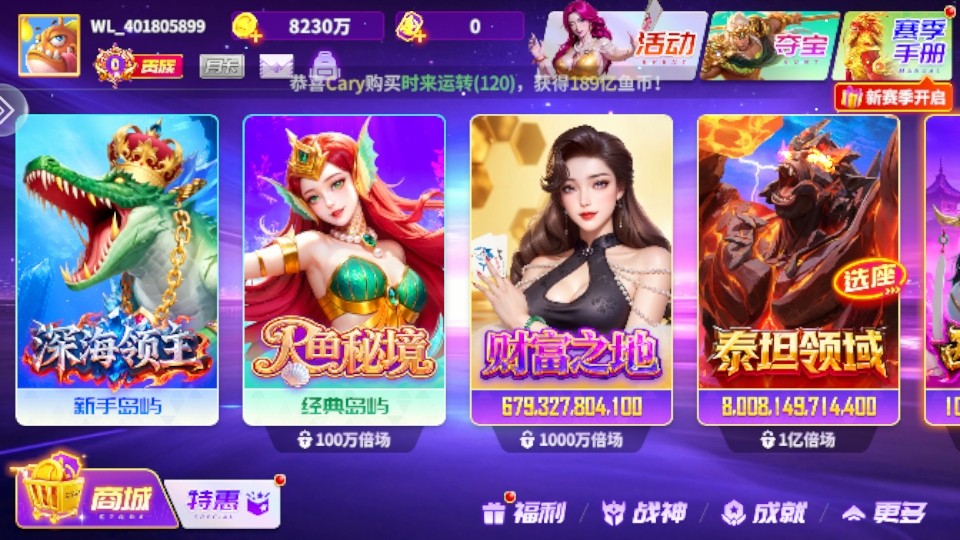 当玩家捕获的奖金鱼和特殊鱼达到一定数量时,就可以获得开启宝藏的机会,随机获得大量的金币、钻石或道具。