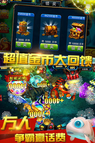 十倍、百倍、千倍炮任你发,无限子弹反弹,金币大丰收!