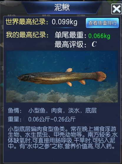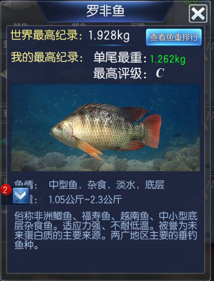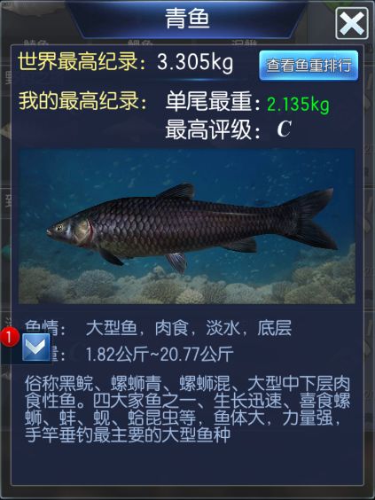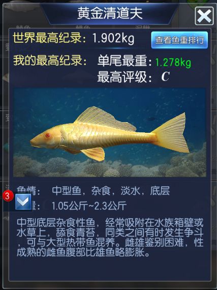 钓鱼乐趣在于探索,同时也可以在玩家交流群内和钓友沟通交流钓鱼心得,也可查看游戏内鱼种图鉴介绍,了解鱼的食性水层信息,对应目标鱼的吃食进行相应的调整可以大大提高目标鱼的中鱼率。