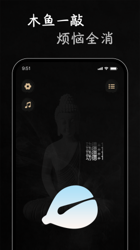 1、笃!功德+1!打开电子木鱼app,不需要实名验证无需手机号码注册登录,直接就能免费开敲!