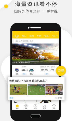乐鱼体育app是一款专注于体育赛事新闻的软件。有了乐鱼体育app,就能为你提供海量的赛事新闻资讯,帮助你轻松了解你喜欢球队的最新动态,是体育爱好者必备的app。快来下载试试看吧!