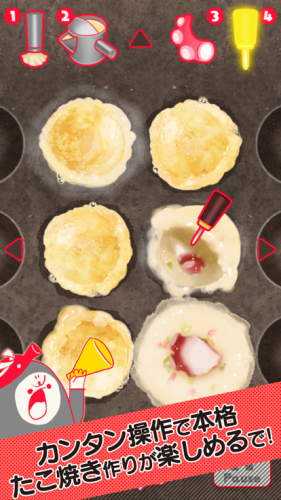 2、用手指滑动来翻转你的章鱼小丸子,让我们开始玩烹饪游戏。